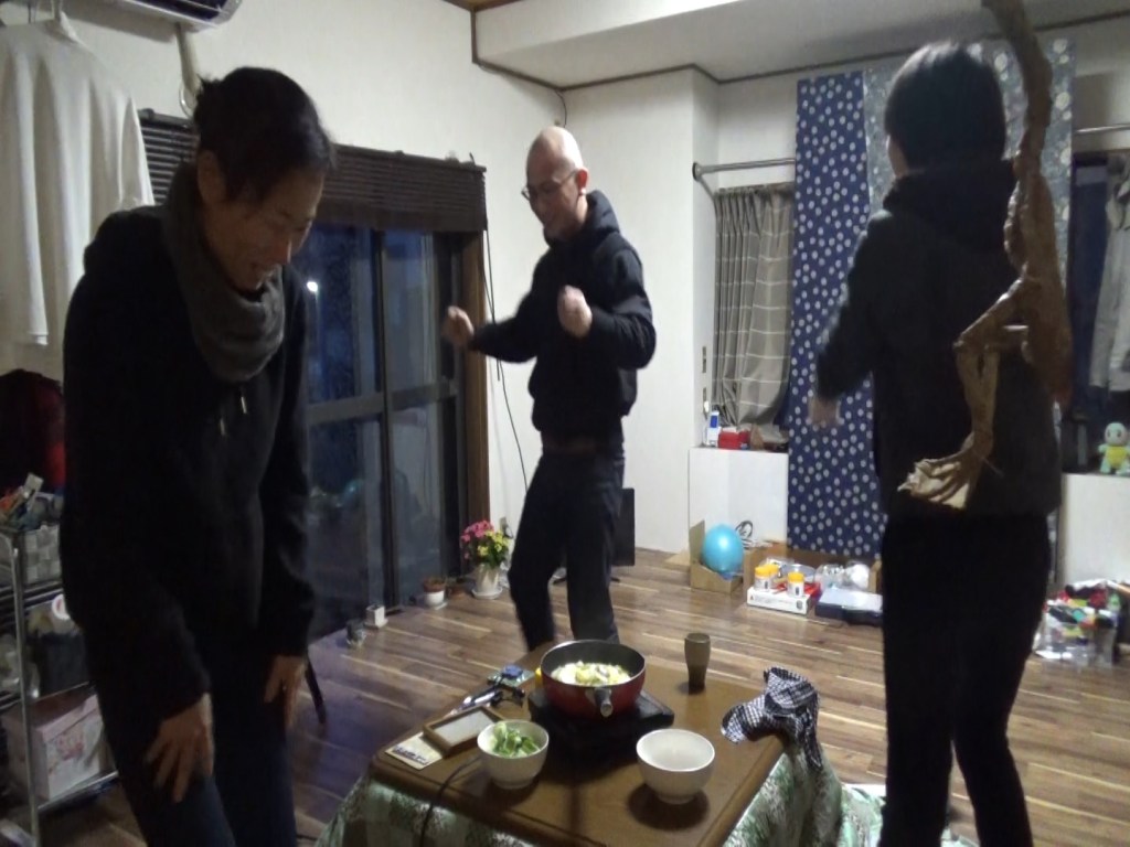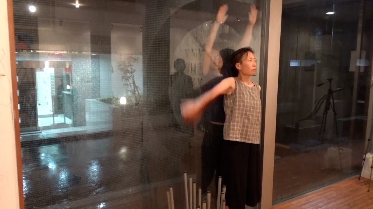 I continued this performance several times for a year.I contacted with an audience using only our bodies. The rules of this performance are “Hold both hands. ” and “Continue this performance until a bell rang (set to 12 minutes)”. He/She pushed back to me as I push him/her or He/She hold weaker as I hold weak. Some people imitated me and some moved different as me. This performance looks as if it is a dancing work.