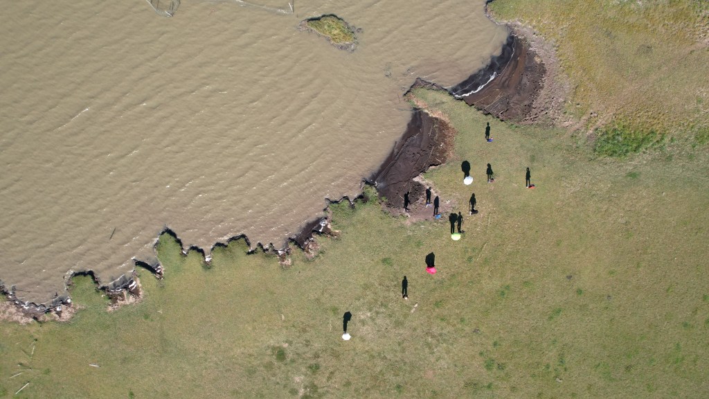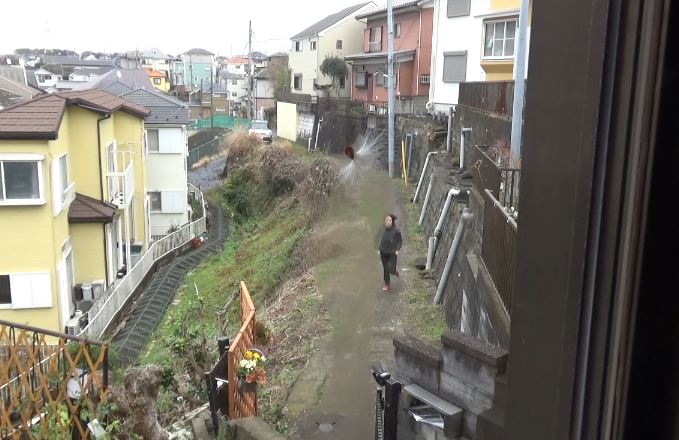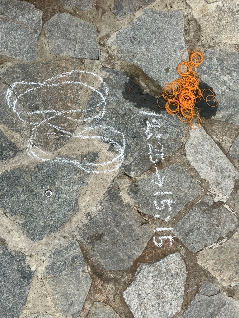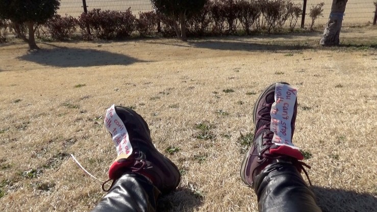 I shot a rubber band toward the sun until it disappeared behind the building. It was a cloudy day, but I could still see the sun behind the clouds. When I couldn’t see the sun at all, I imagined its position behind the clouds and followed the line along when it moved. Because of cloudy weather, I felt I could grasp a different concept in this work. A repeated actions of shooting while searching for a undefined target.