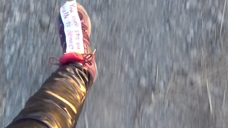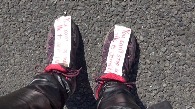 1人が立っている間1人は寝ているというルールを設け、5時間のパフォーマンスをした。