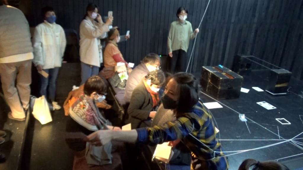 I'd made Origami cranes to pray for the people who had suffered from Tohoku Earthquake. In this performance, I unfolded those Origami craned with audiences.