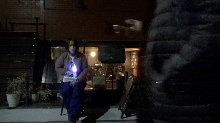 Since I did this performance in the city , there were always people around. Some were just coming back from parties, some were drinking at the bar and others were chatting with friends in front of convenience stores.