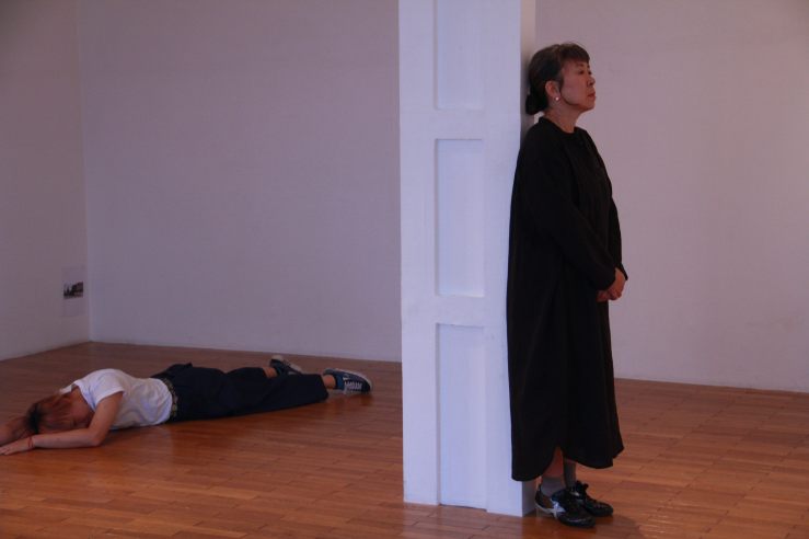description: 5 hours durational performance with a rule that one had to lay down while the other stood.
