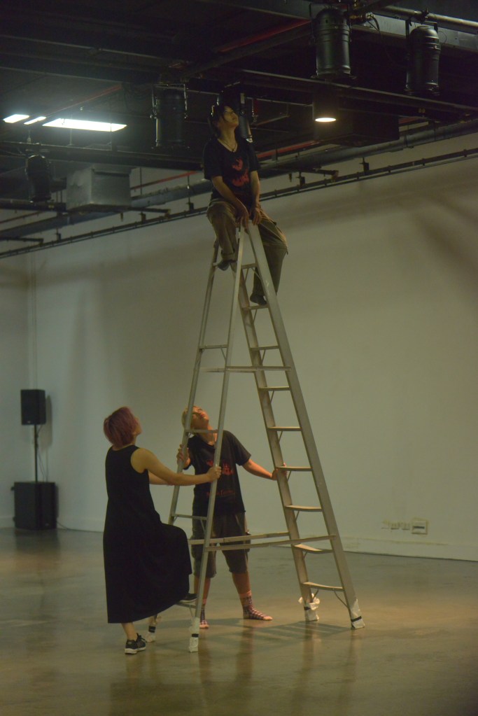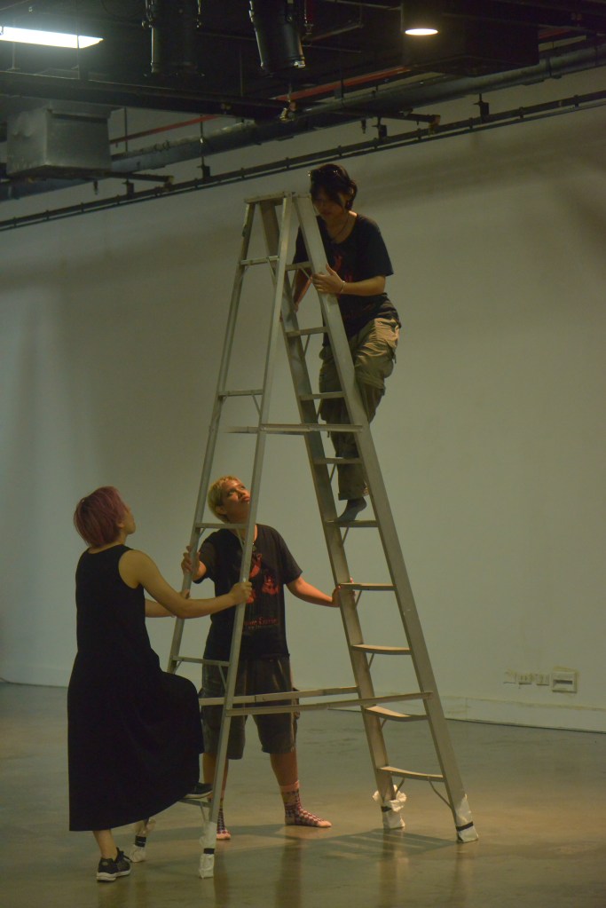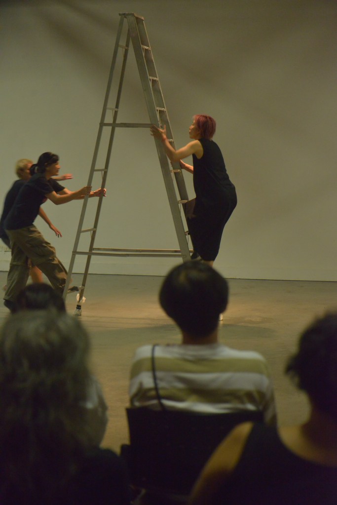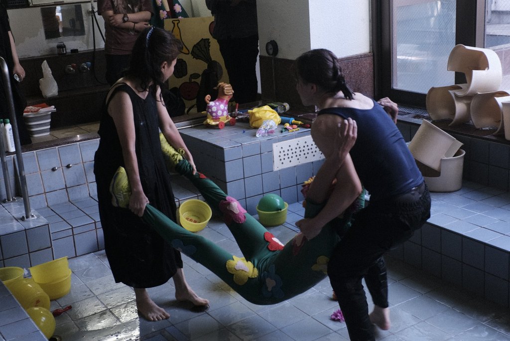 お互いの反応が反応を呼ぶ。ダンス作品にも見えるパフォーマンス。