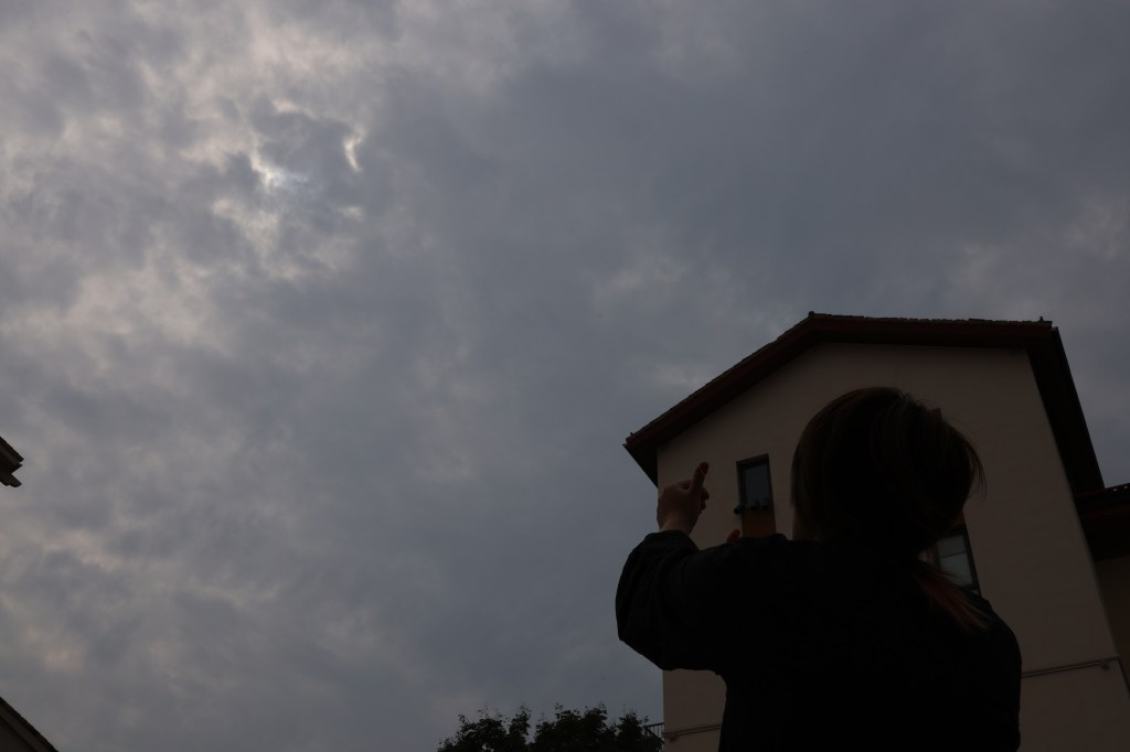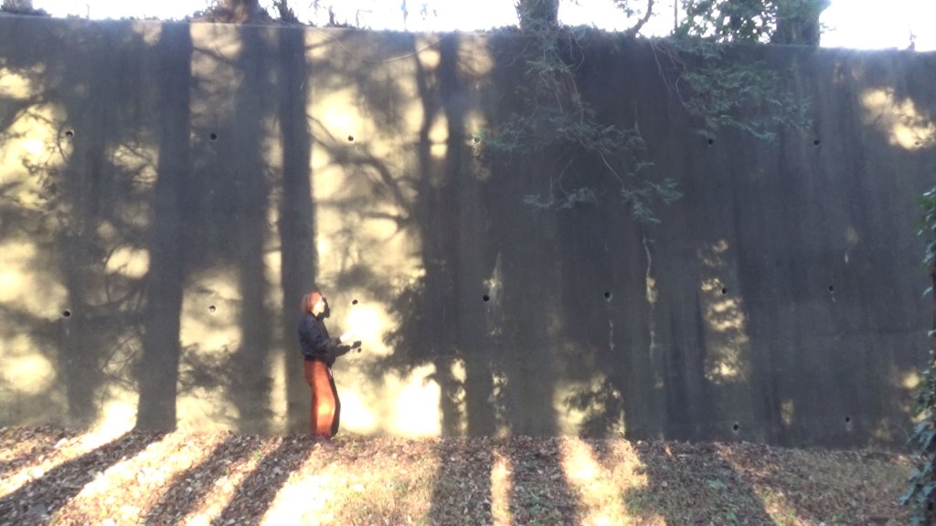 explanation: このパフォーマンスを成都のフェスティバルで再度やることにしたが、成都は年中曇りか雨の地域だった。雲の隙間から太陽が見えてくるのを待ち、12時ごろからパフォーマンスを始め、ビルの後ろに太陽が隠れるまで、太陽に向かって輪ゴムを打ちつづけた。ペースは今年5月のパフォーマンスと同じく60秒に1回だった。雲の後ろの太陽の光は強く、曇っていてもどこに太陽があるかわかった。時々雲が厚くなり全く見えなくなった時は、今までの軌道から場所を推測し、太陽を探すようにしながら輪ゴムを打った。前回とは違う状況により、この作品の新たな可能性に接触できた感じがした。的が定まらないものを探しながら打ち続けるということ。