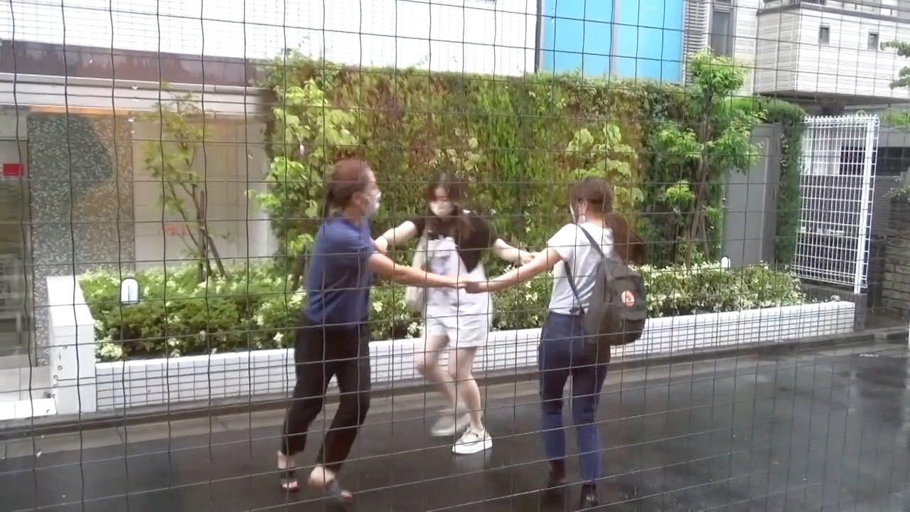 と身体だけで行う対話する。両手を握り続けていること、アラーム鳴ると終わりにするのがルール。手で