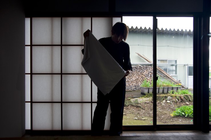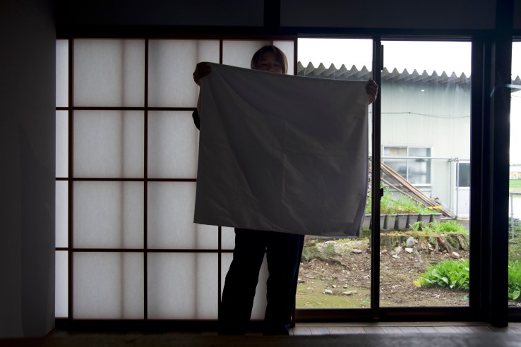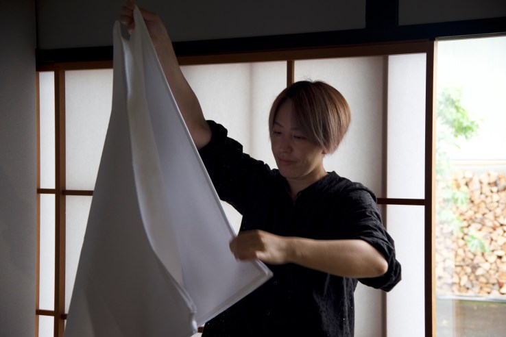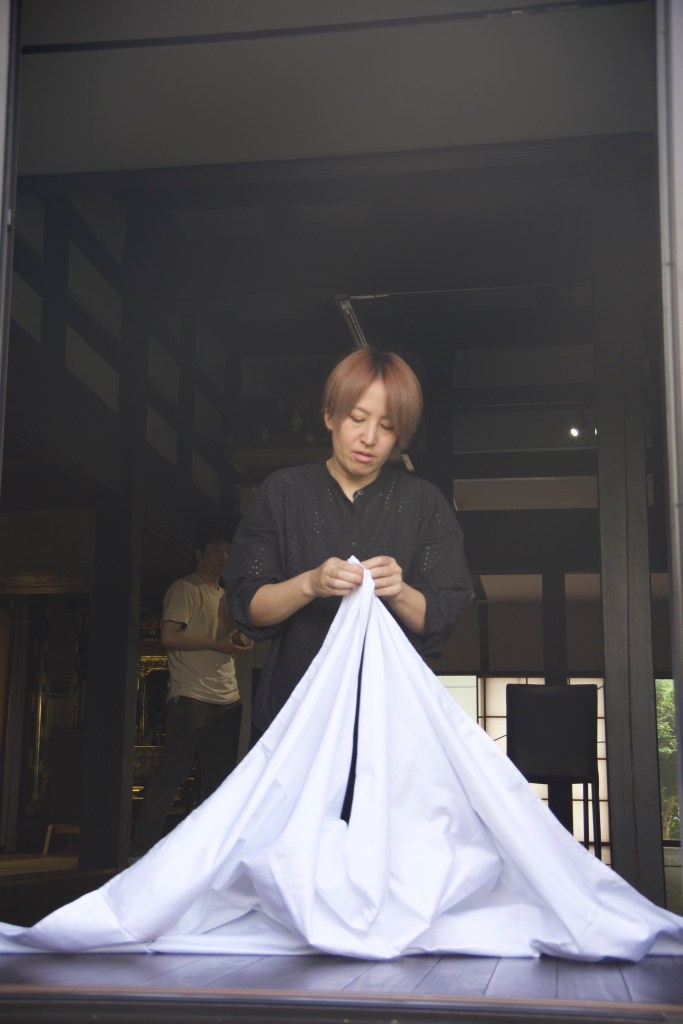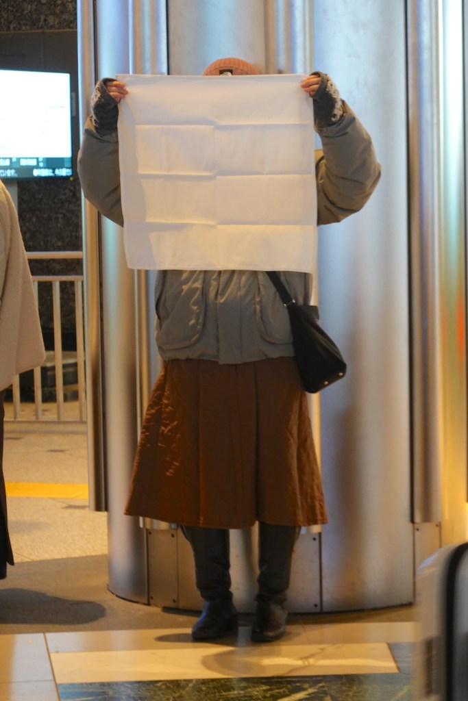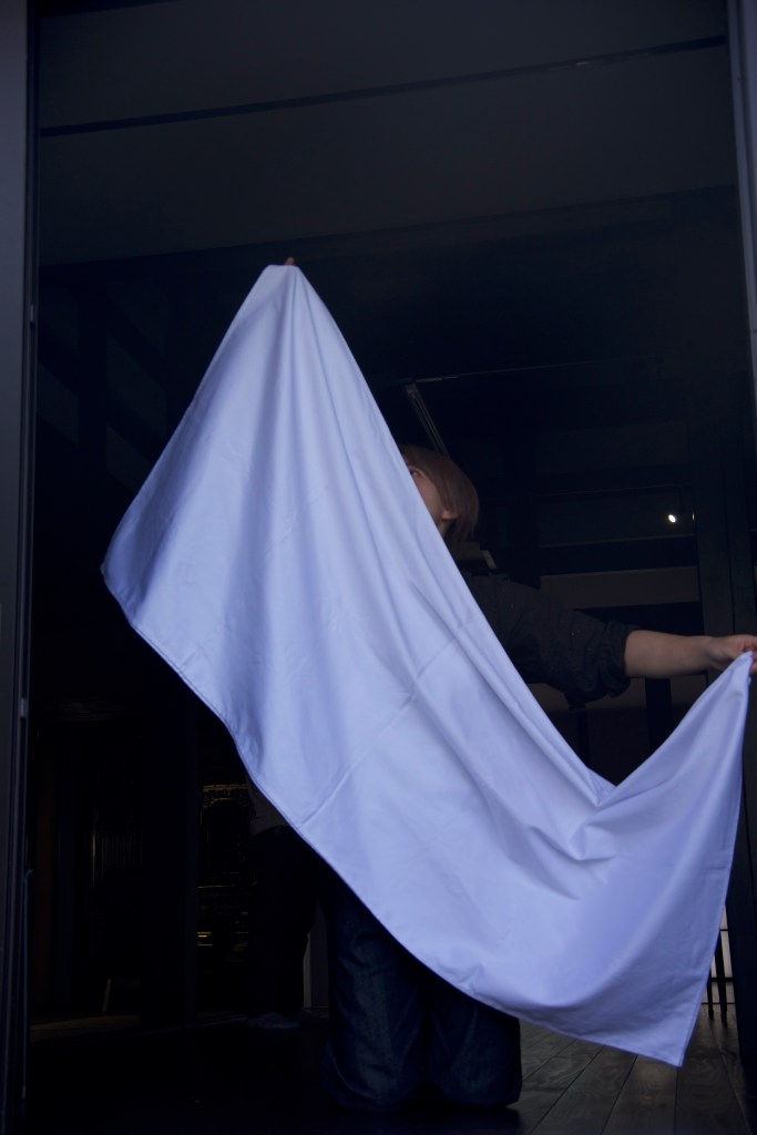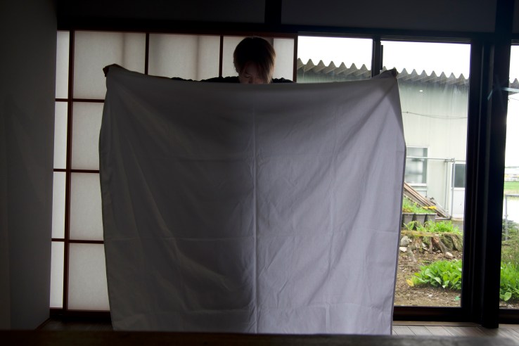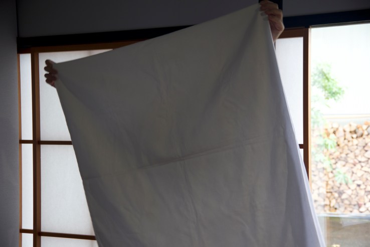 30センチ×30センチの畳まれた白い布を鞄の中から取り出し、