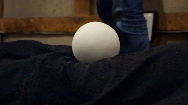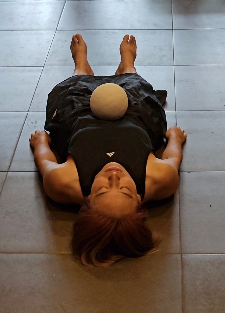 I had audience hold a cup of hot water while I lay on the floor with a sphere on my belly.