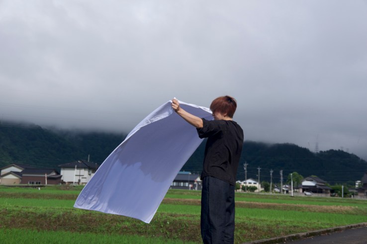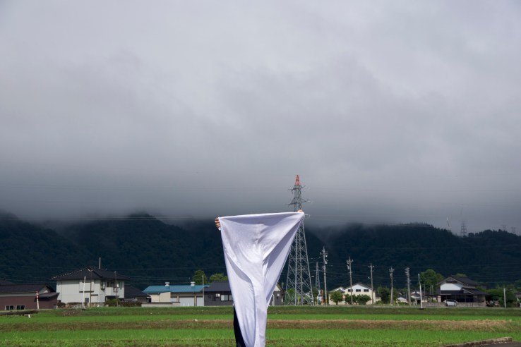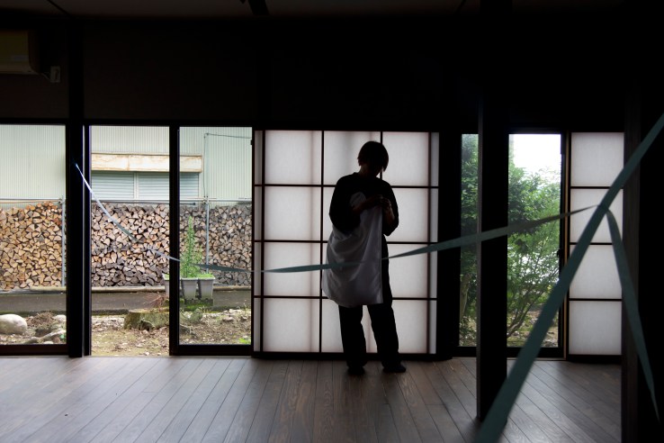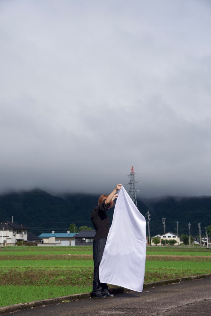 東北での震災の衝撃がまだ強かった頃のパフォーマンス。祈りのために折る鶴をマテリアルとして使用した。